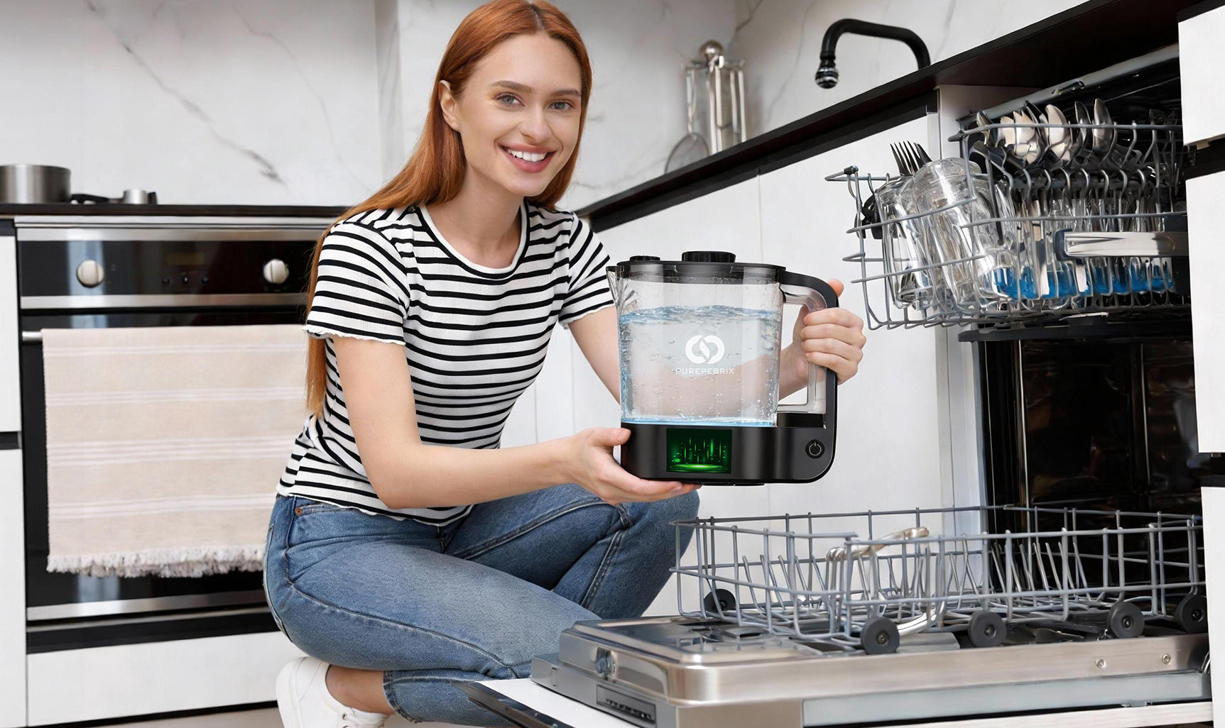 Fill: Pour filtered or bottled water into the pitcher (do not exceed the 2L line).Hydrogen Modes: Touch the power button to select the 5-minute cycle for daily hydration or the 10-minute cycle for maximum hydrogen concentration.Maintenance (Self-Clean): Activate the dedicated 3-minute Self-Cleaning Mode regularly to maintain laboratory-grade purity for every pour.